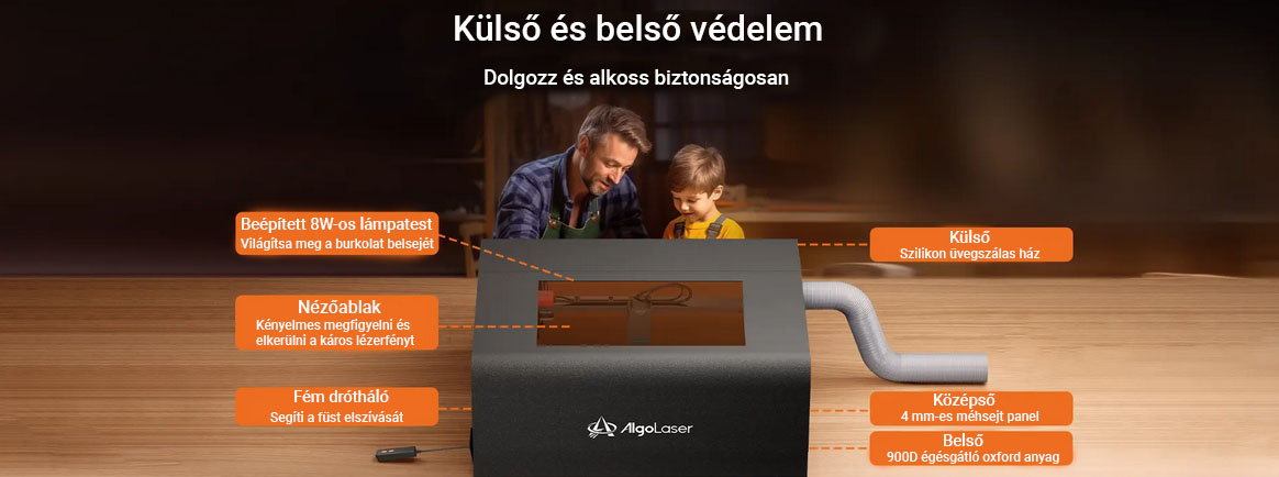 AlgoLaser lézergravírozó ház (enclosure) füstelszívással