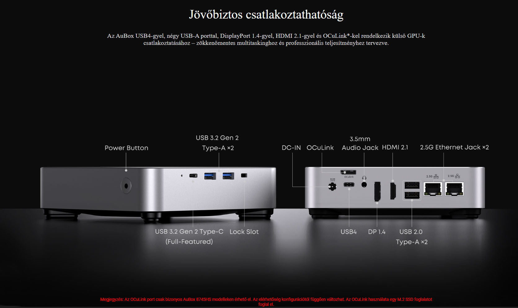 - Kapcsolatok: Wi-Fi 6, Bluetooth 5.2, Dual 2.5G LAN (2× RJ45 2500 Mbps)